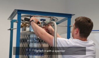 Cryomed Basic, Cryomed Pro and Cryomed Pro Ultra have a niche to roll in a Dewar tank for the time of a cryotherapy session. Liquid nitrogen is pumped out of the tank into the cryosauna.