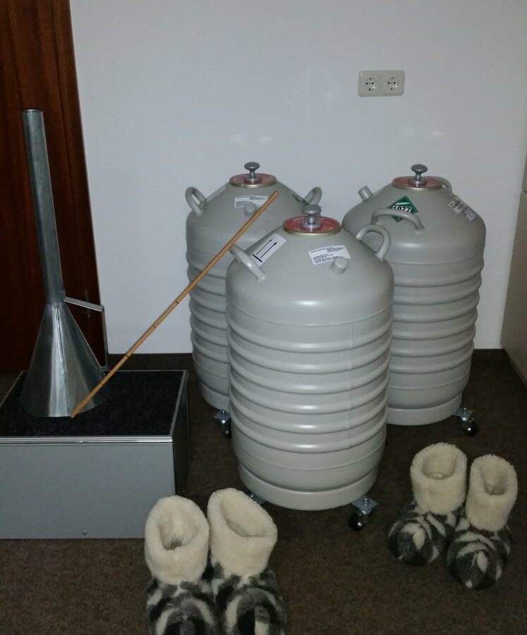 Used cryosauna Cryomed Pro, dual version with three 40L Dewar tanks, perfect condition.